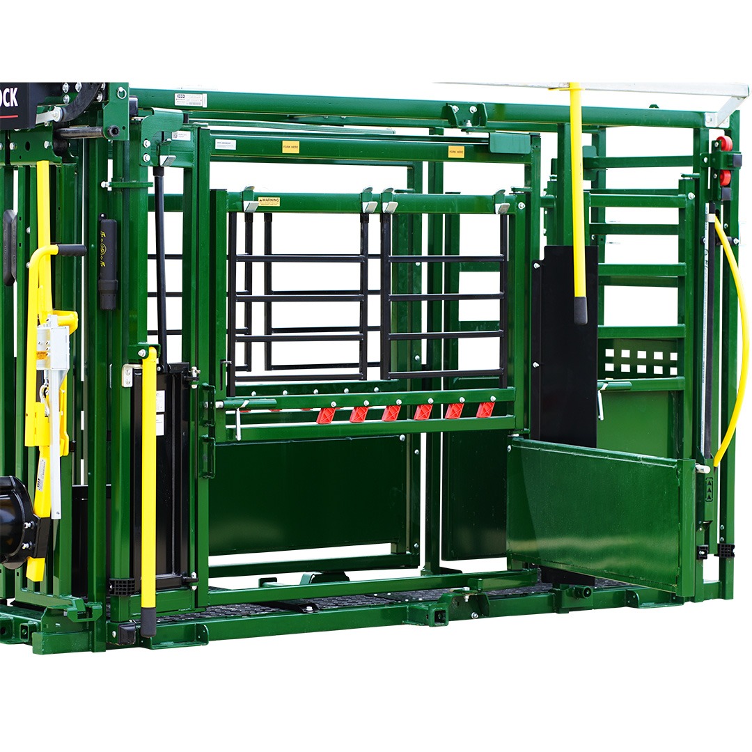 The Arrowlock 75 Series Squeeze chute is an efficient, safe, and reliable solution for all your cattle handling needs. Built to streamline your operation with a ratchet style locking mechanism on the head gate, working cattle on your operation is effortless. The Deluxe Vet option features a full-sized vet cage so you can access your cattle with an added layer of safety, and the Standard model (with no vet cage), features all the same access points with many add-on options.