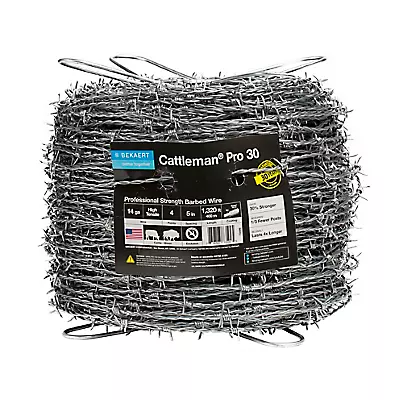 Cattleman® Pro 30 High Tensile Barbed Wire is built for superior strength, long-lasting durability, and top-tier corrosion resistance. Featuring 4-point barbs, 14 gauge high tensile wire, and a Bezinal® coating guaranteed for 30 years, this wire offers ultimate protection for your livestock and property, even in harsh conditions.